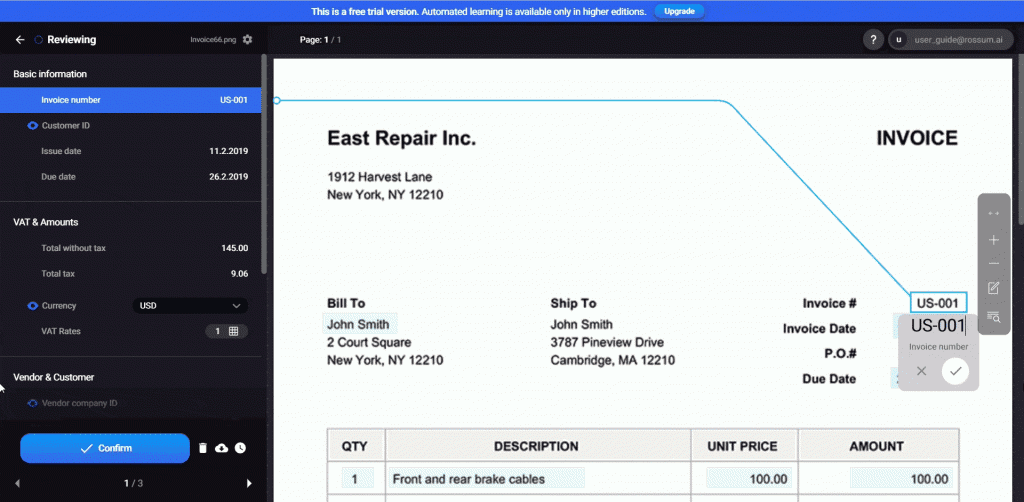 Rossum is a cloud-native document processing platform. It is a specialist in transactional document automation, particularly accounts payable flows including invoices, supporting documents, and matching against purchase orders and receipts. It’s built around template-free extraction for variable invoice layouts. Rossum including robust handling of line items, which is where many general-purpose IDP tools struggle.